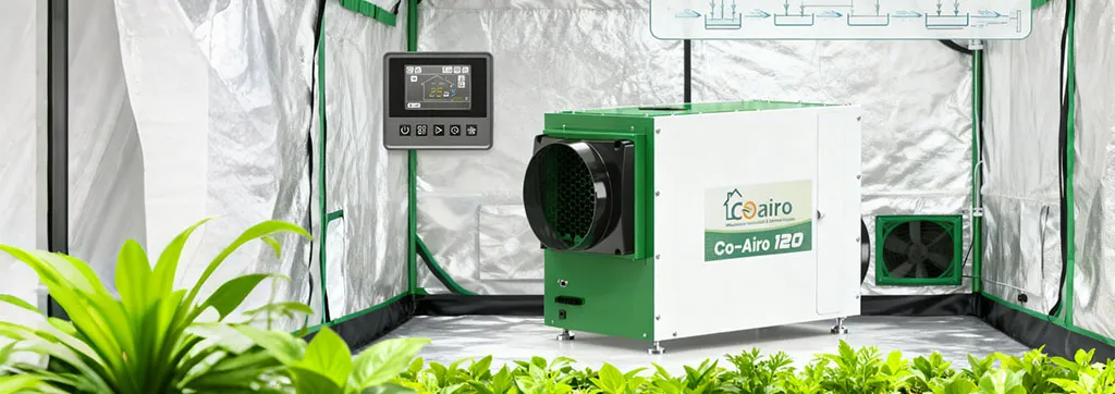 Coairo units remove 90 to 165 pints of moisture daily, covering 2,300 to 4,000 sq ft. This precise control prevents mold and ensures ideal conditions for plant growth.